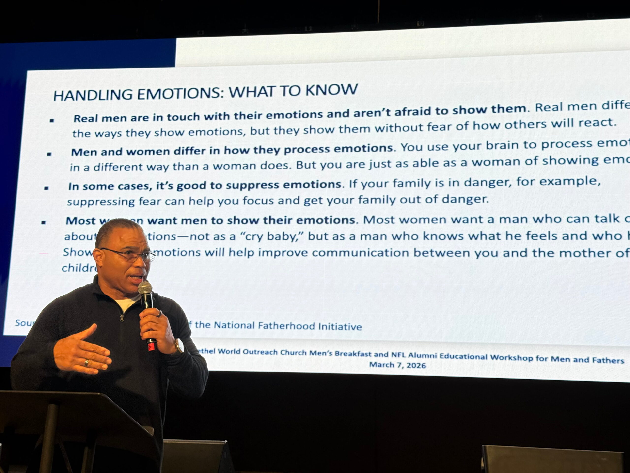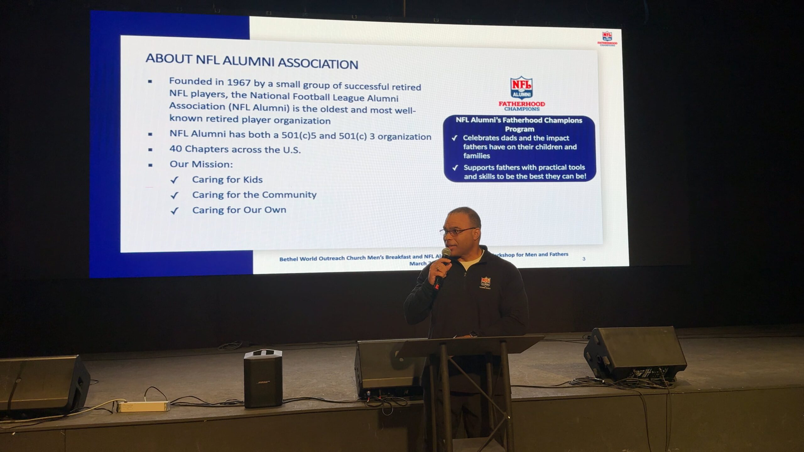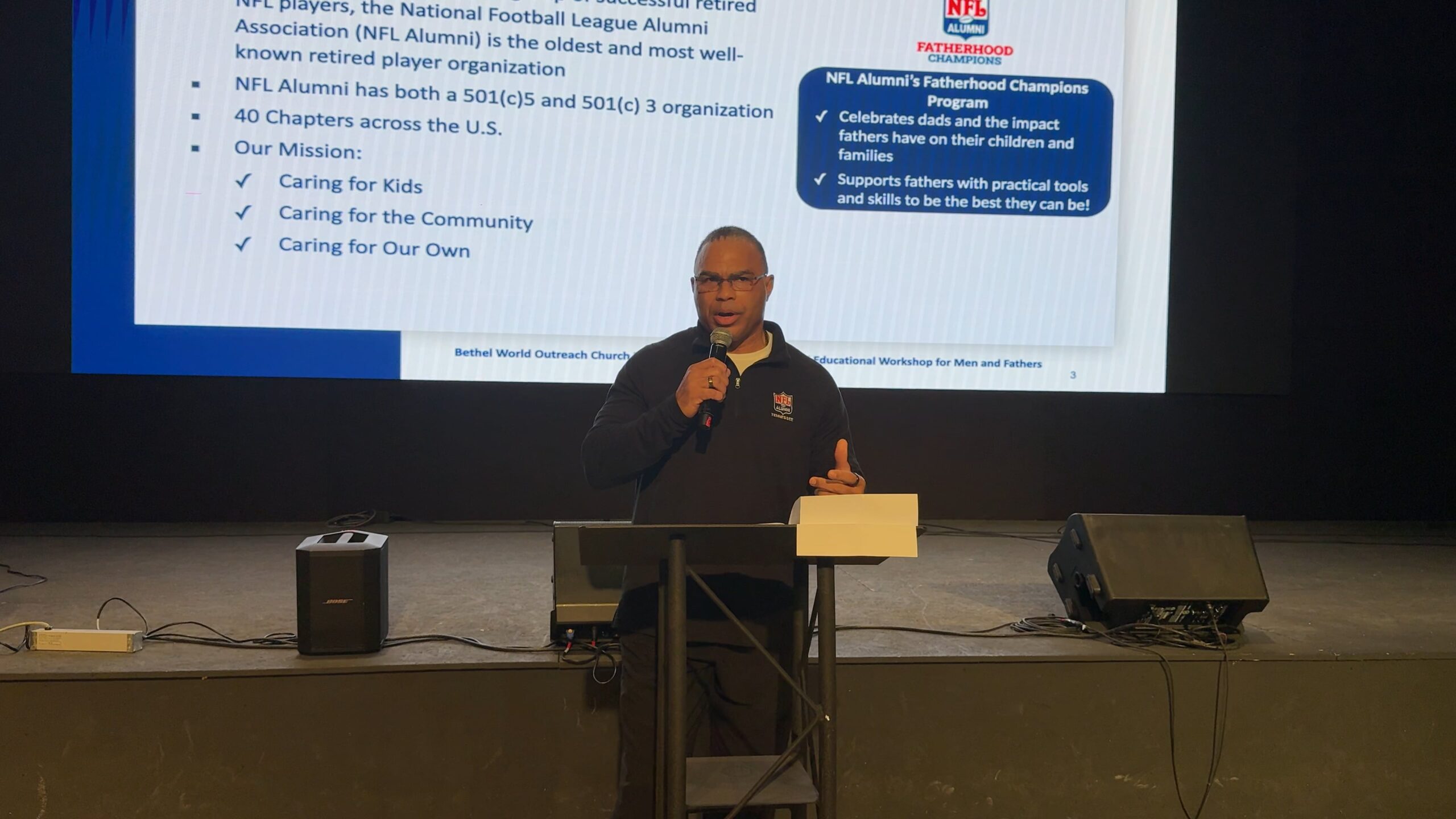 NFL Alumni Joins Bethel World Outreach Church Men's Breakfast Educational Workshop for Men and Fathers Part of NFLA Training Camp for Dads