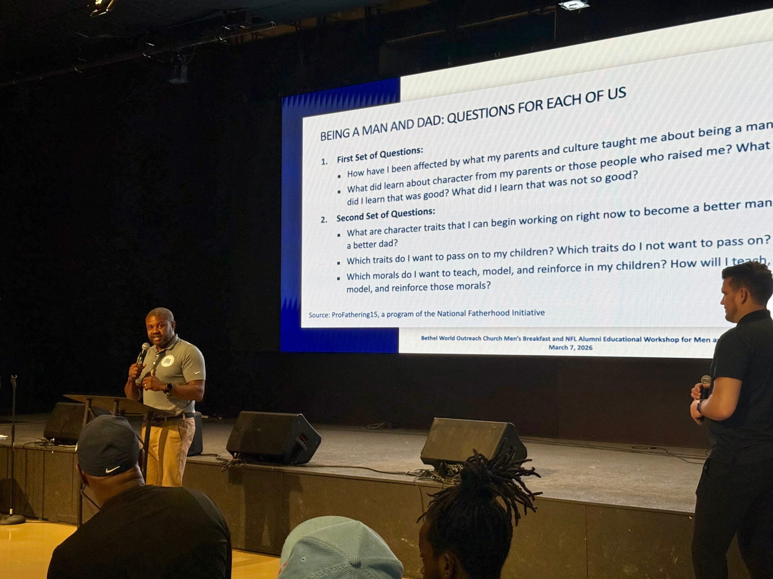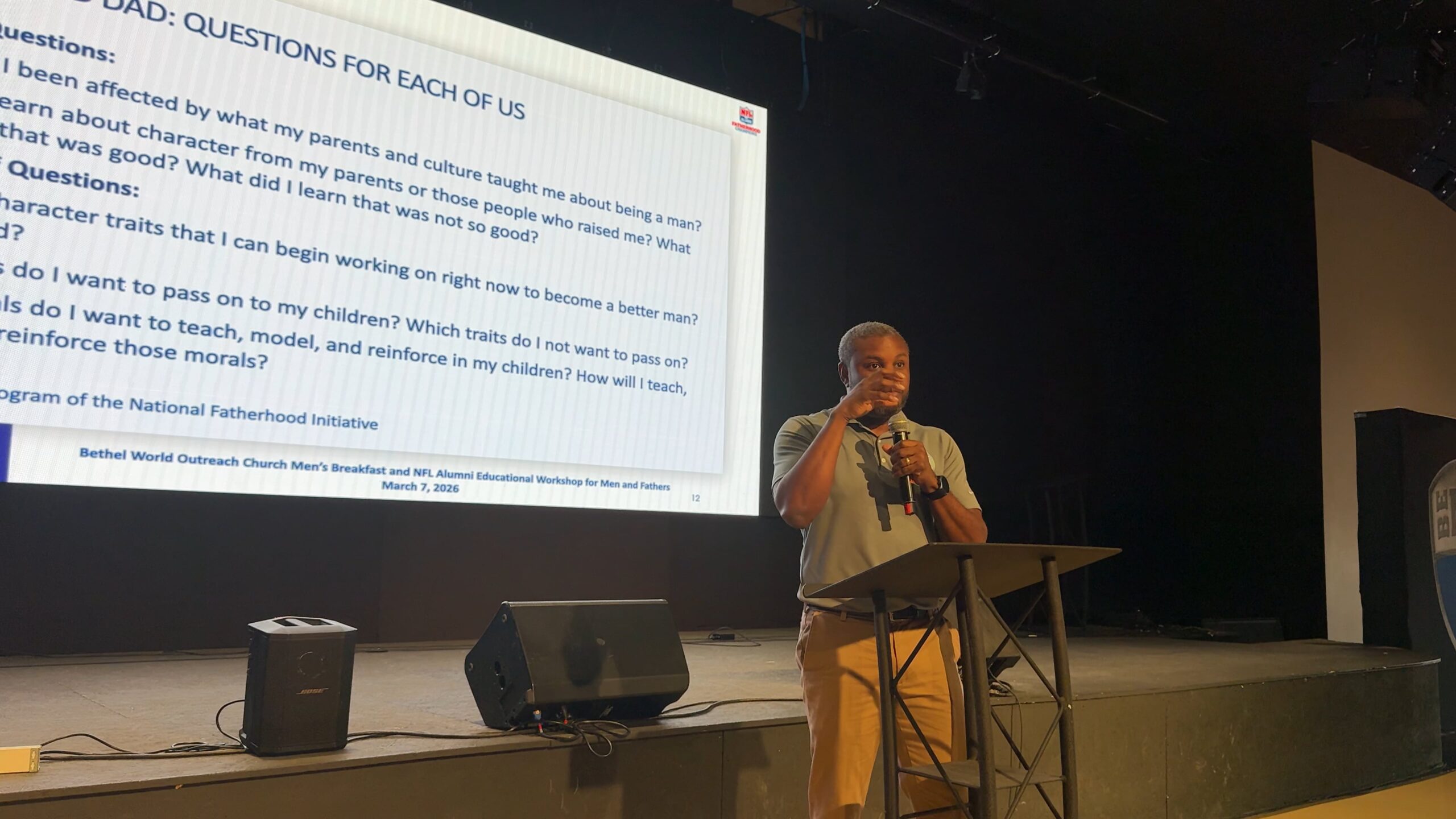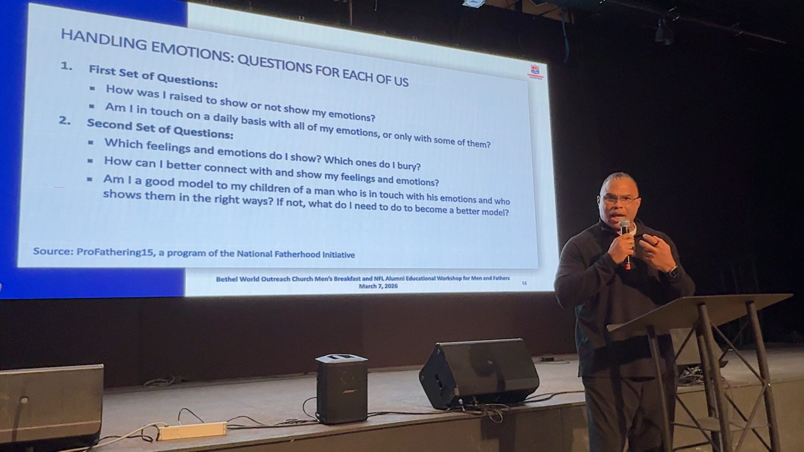 NFL Alumni Joins Bethel World Outreach Church Men's Breakfast Educational Workshop for Men and Fathers Part of NFLA Training Camp for Dads